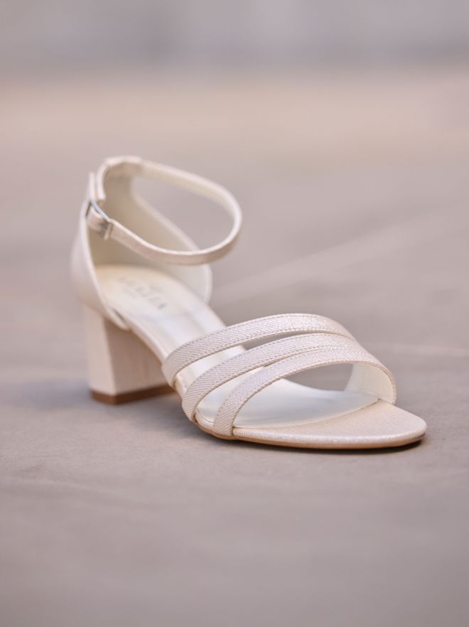 Modern, klar, selbstbewusst: Diese Braut-Sandale aus edlem Satin überzeugt mit einem breiten 9 cm Absatz, der Stabilität und Eleganz vereint. Der schmale Riemenverschluss sorgt für sicheren Halt und angenehmen Tragekomfort – perfekt für den Hochzeitstag und lange Tanznächte.