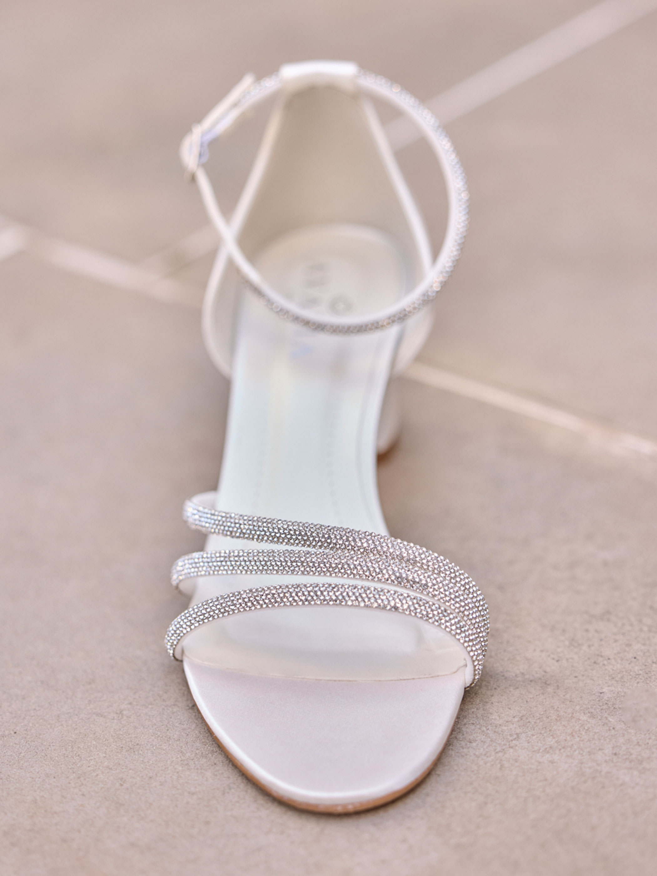 Modern, klar, selbstbewusst: Diese Braut-Sandale aus edlem Satin vereint Komfort und Eleganz. Feine Kristalle an Knöchel- und Zehenriemen setzen glanzvolle Akzente und unterstreichen den stilvollen Look. Der 6 cm Absatz formt eine feminine Silhouette, während der Knöchelriemen sicheren Halt und angenehmen Tragekomfort bietet – perfekt für Hochzeit, Empfang oder den Tanz am Abend.